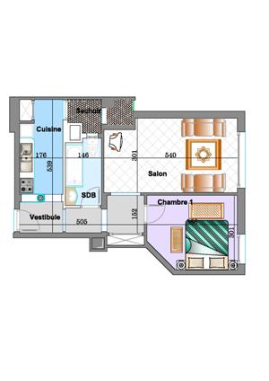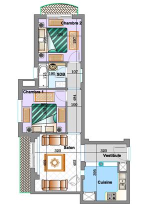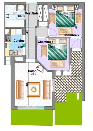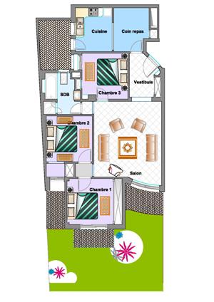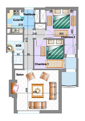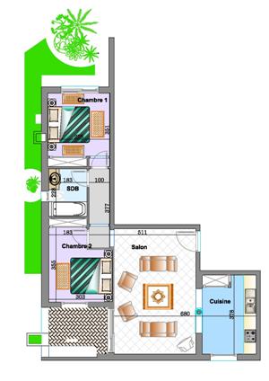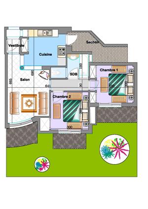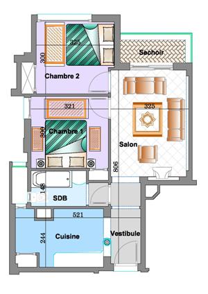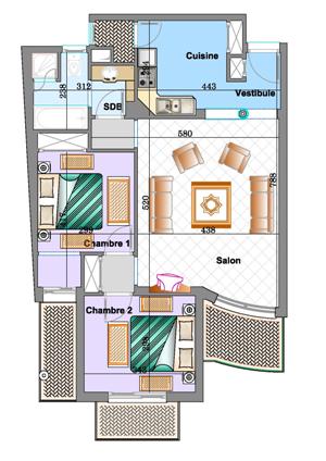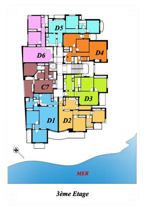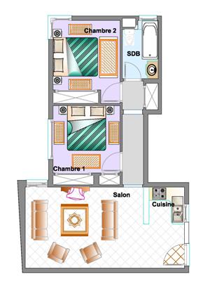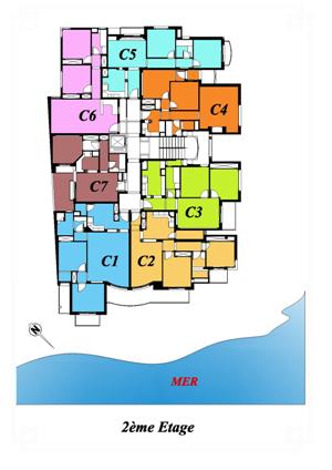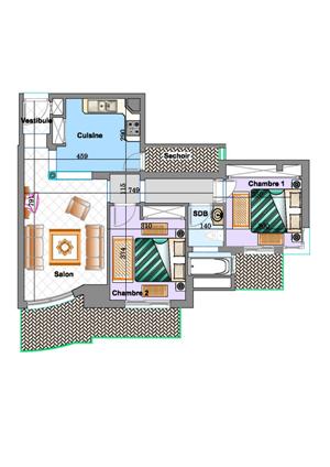 Plan du B6, du C6 et du D6, 2 chambres. |