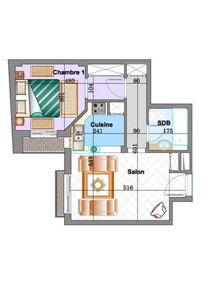 Plan du B7, du C7 et du D7, 1 chambre. |